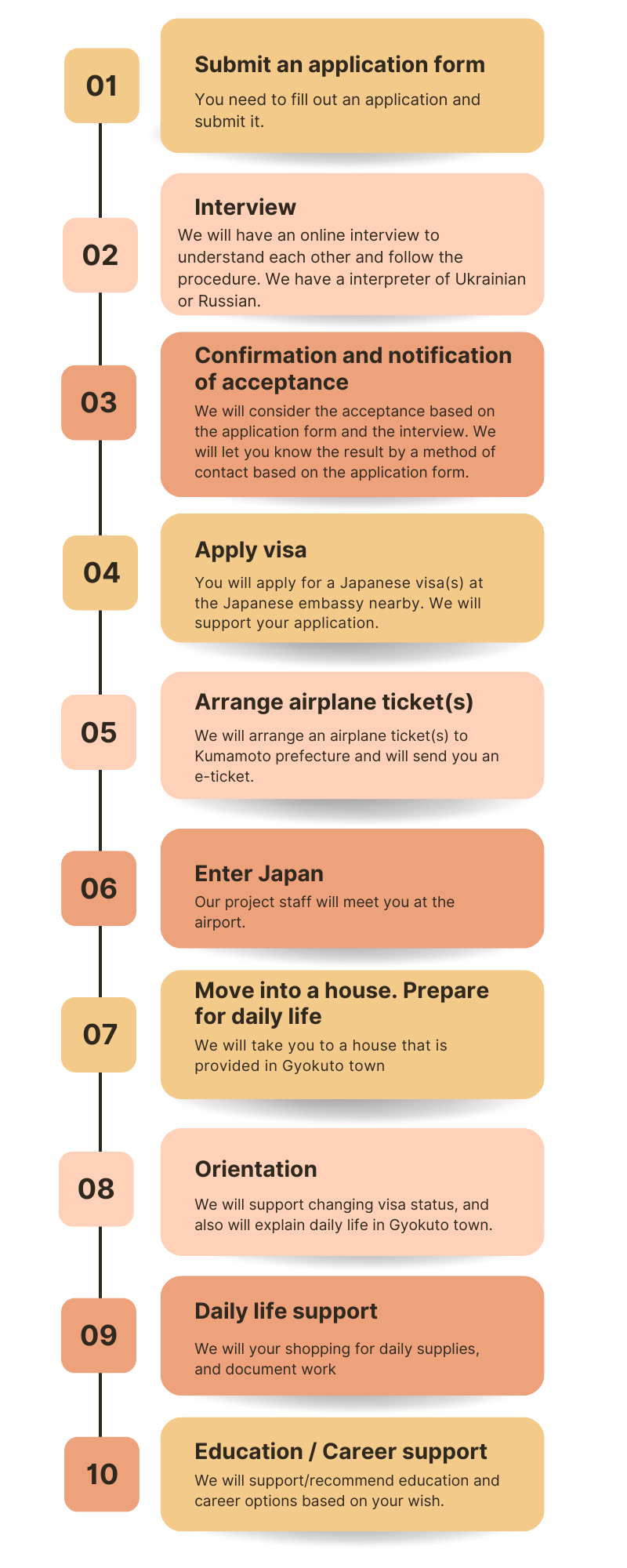 - We provide travel expenses from Ukraine or the countries around Ukraine to Gyokuto town.